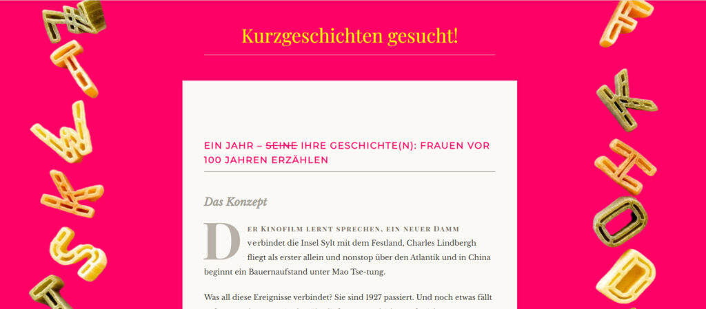 In diesem Jahr riefen wir erstmalig auf zur Einreichung von Storys für das Jahr 1927 – ein Jahr ihre Geschichten.